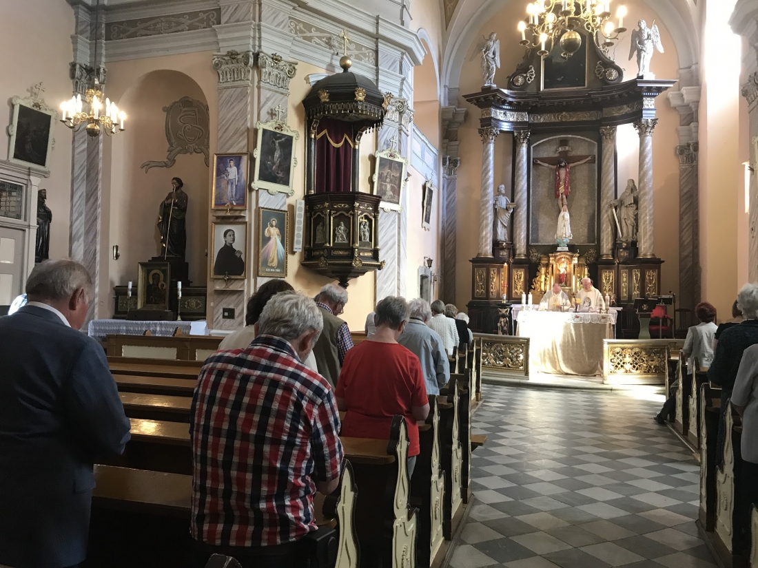 19 maja w naszym kościele celebrowano Mszę Świetą, której przewodniczyli kapłani niemieccy, przybyli do Ziębic wraz z grupą osób urodzonych na ziemi ziębickiej. Nasi goście spotkali się najpierw z ks. Proboszczem Rafałem, przy kawie i słodkościach. Ks. Proboszcz zapoznał grupę z historią naszej świątyni i parafii.
